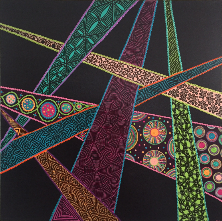 Chacune porte en elle un monde : labyrinthes turquoise, spirales profondes, cercles dansants, motifs sacrés ou célestes. Elles se croisent, se frôlent, se superposent, comme autant de pensées en mouvement, de destinées entrelacées, ou de forces invisibles qui tissent la trame d’un univers en expansion.